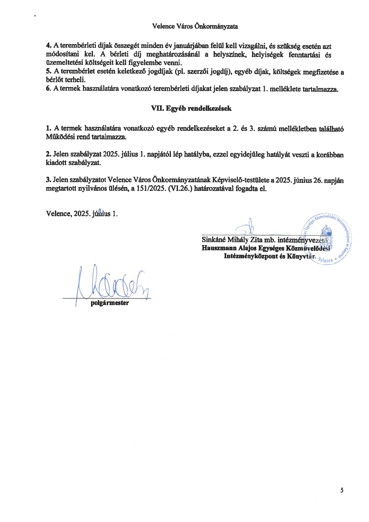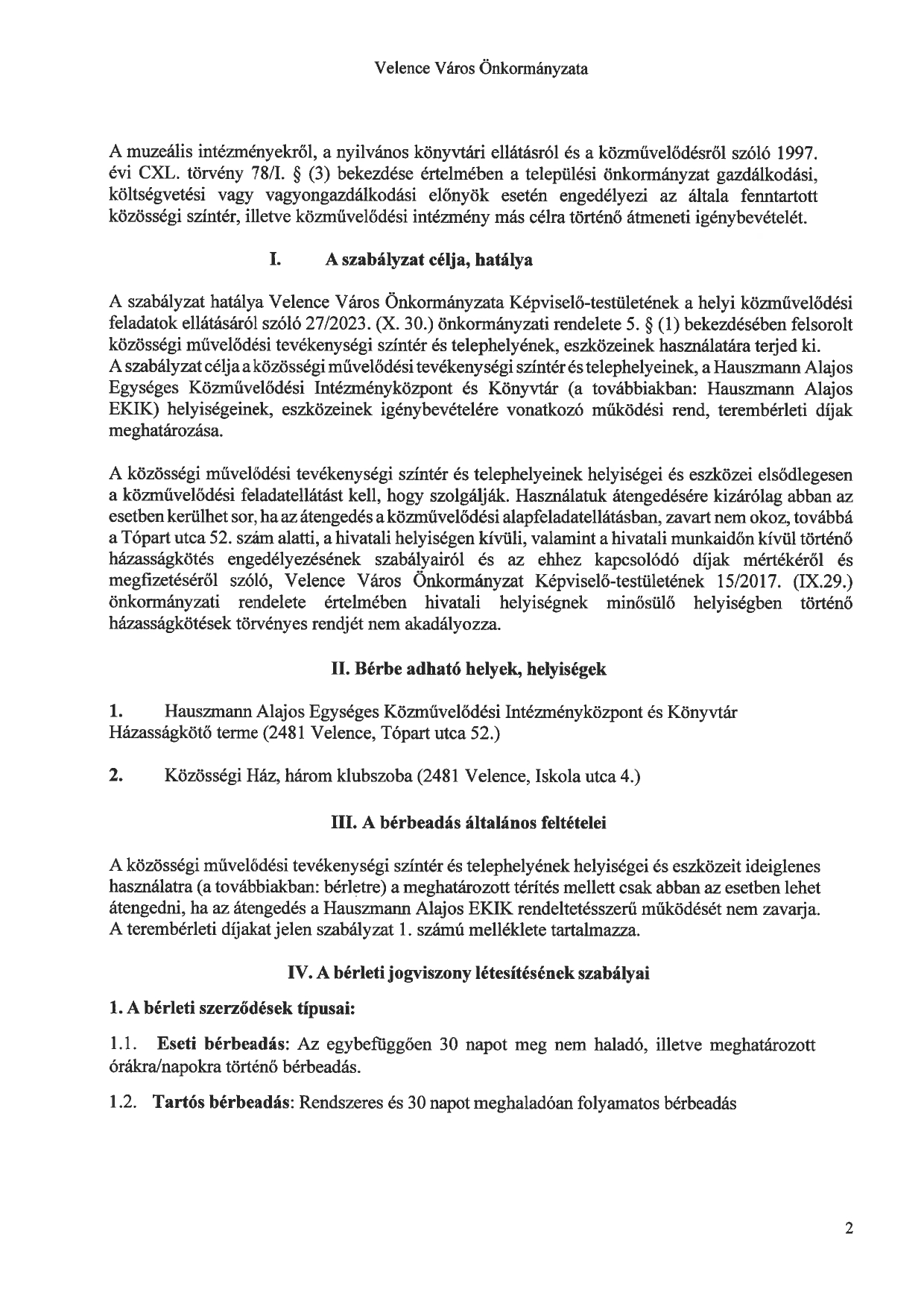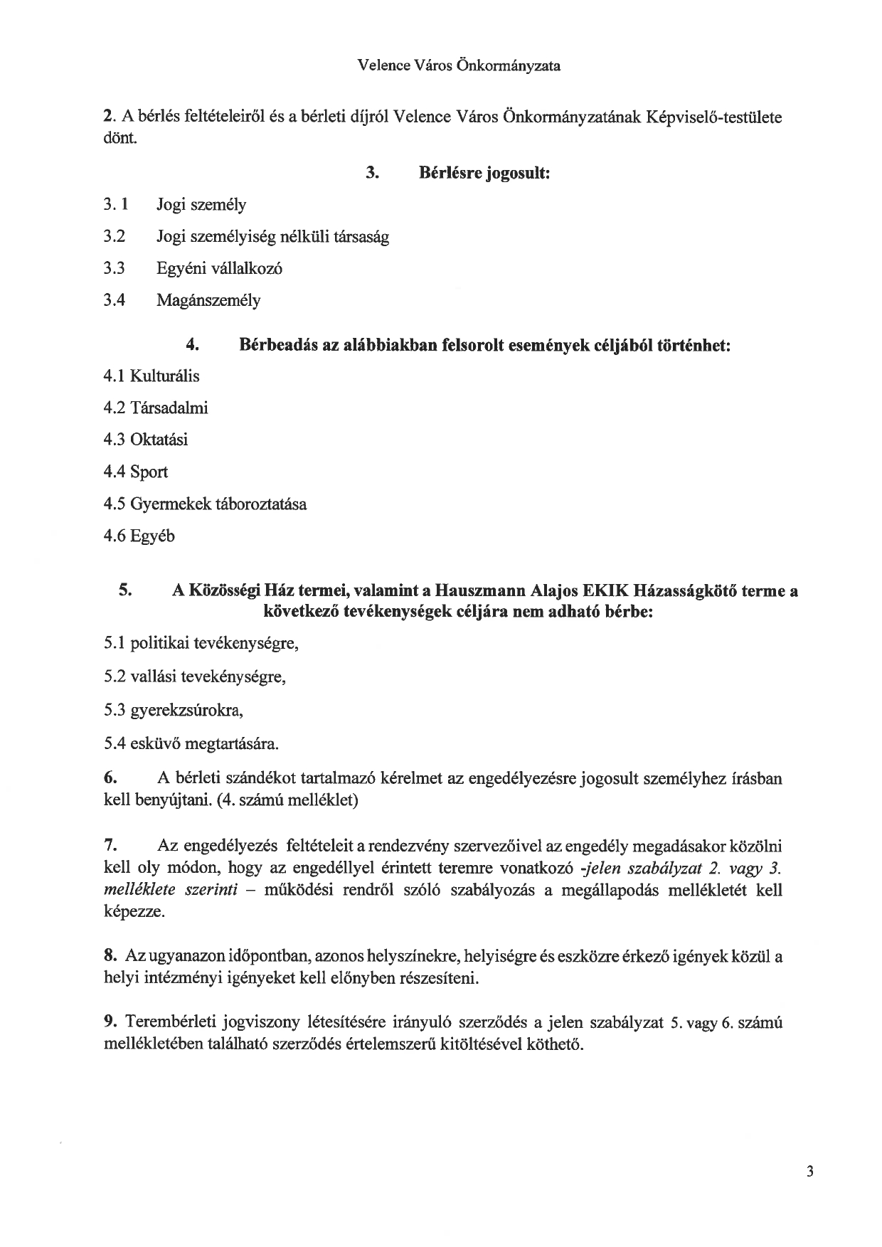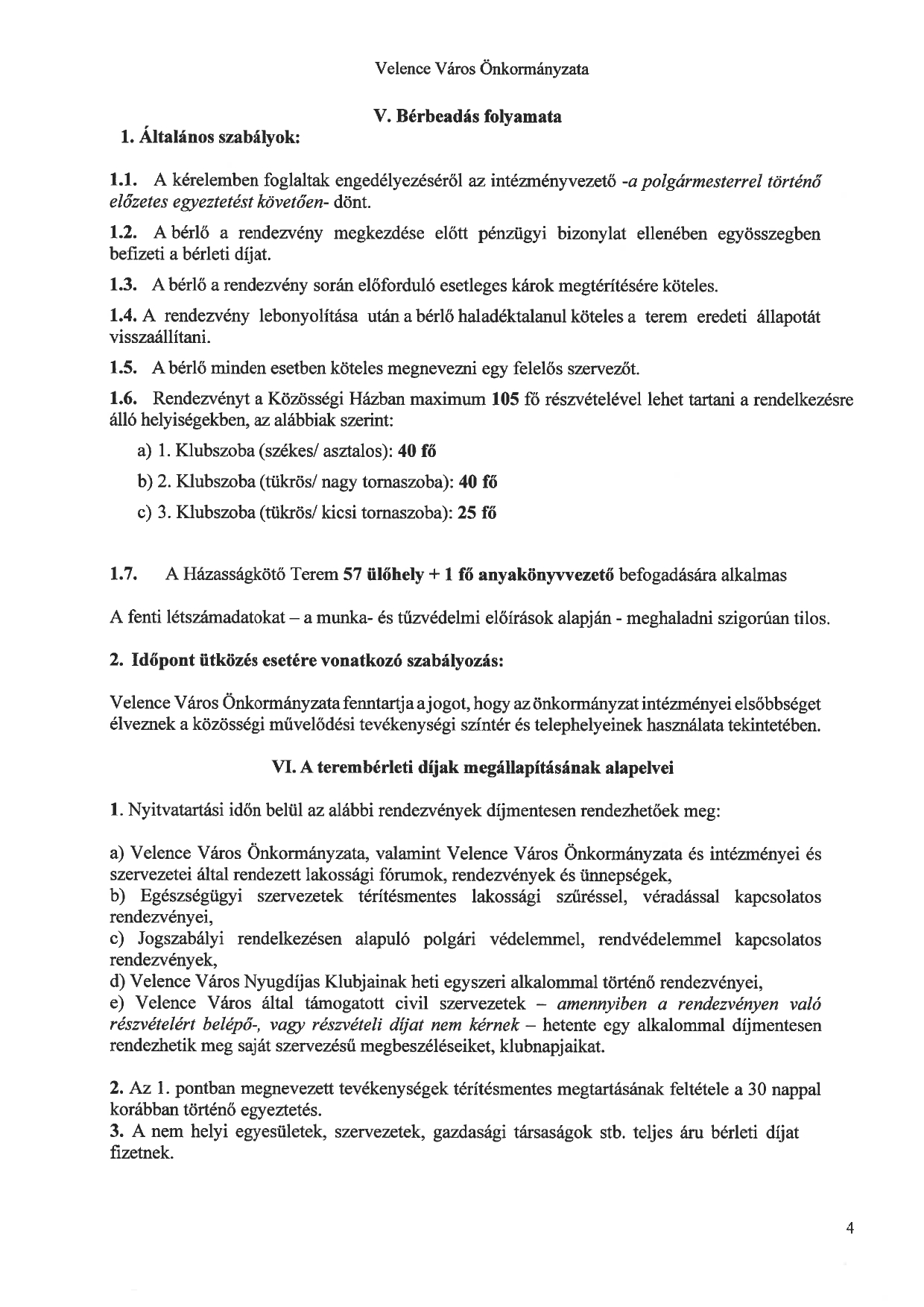 Közösségi Ház Teremhasználati szabályzat
